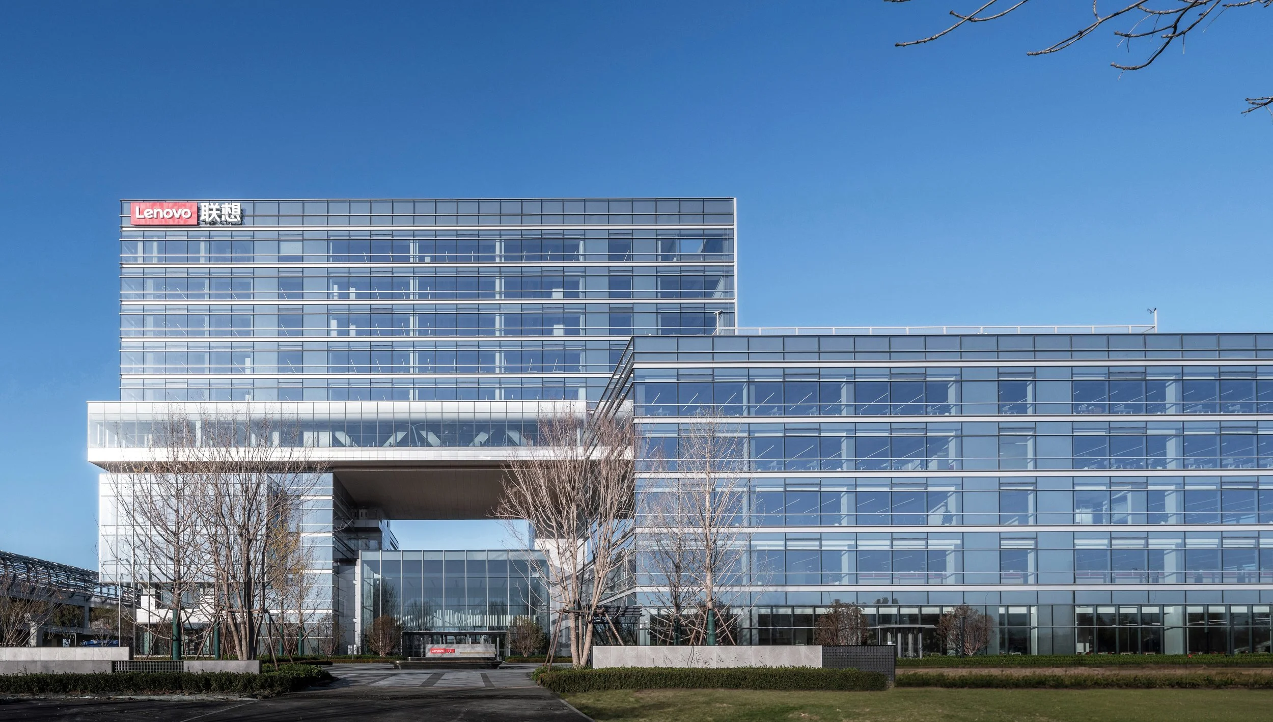 The building consists of three horizontally extending office blocks interwoven and organized around a central, spacious, and open public Four Seasons Hall. Each block is efficiently customized according to corporate needs and connects via the Four Seasons Hall to the city's light rail and outdoor gardens. Like Lenovo's Beijing headquarters, both the Four Seasons Hall and the Enterprise Garden are open to the public. This friendly and open spatial layout reflects the shared growth of the enterprise and the city, serving as both the corporate living room and a gateway to the airport's core area.